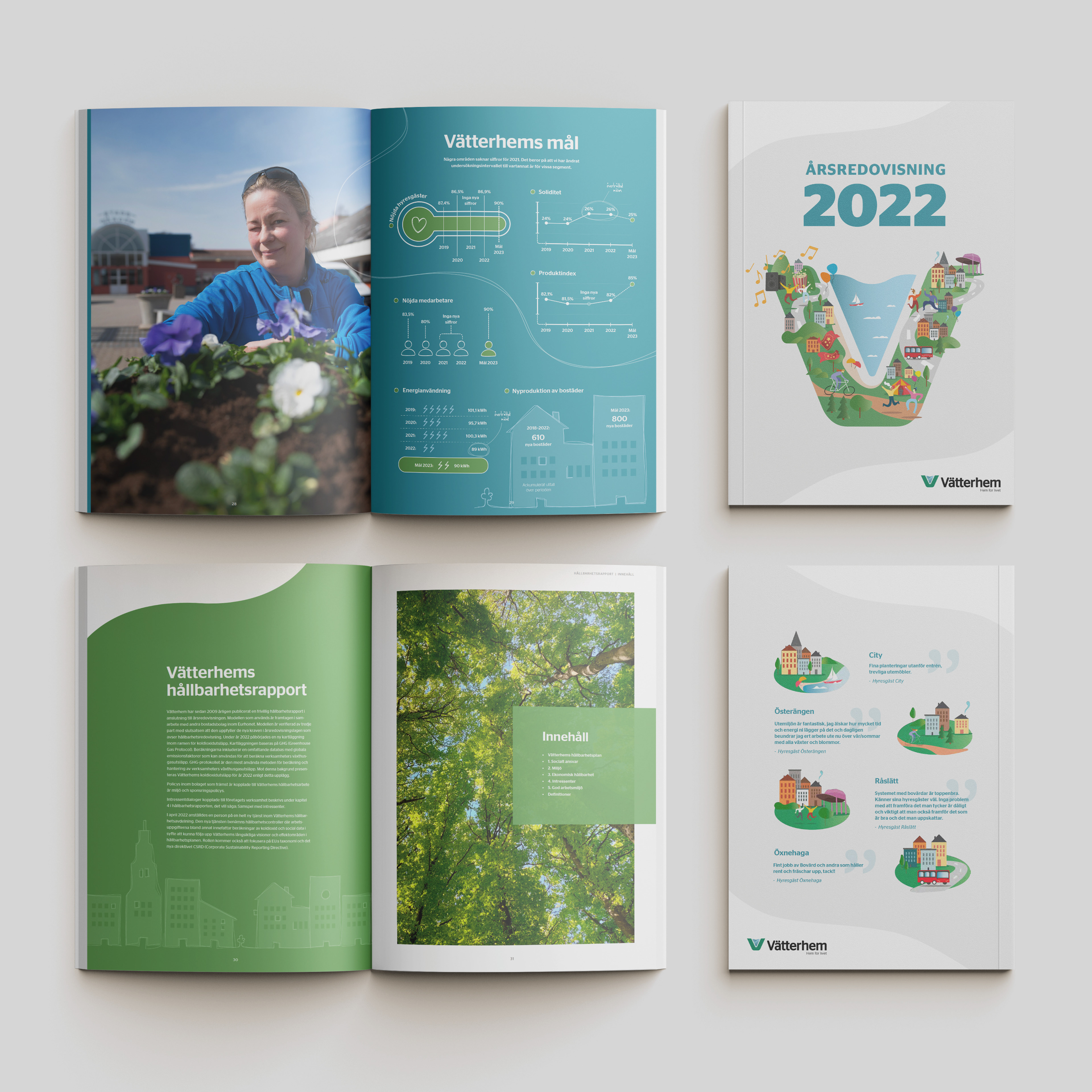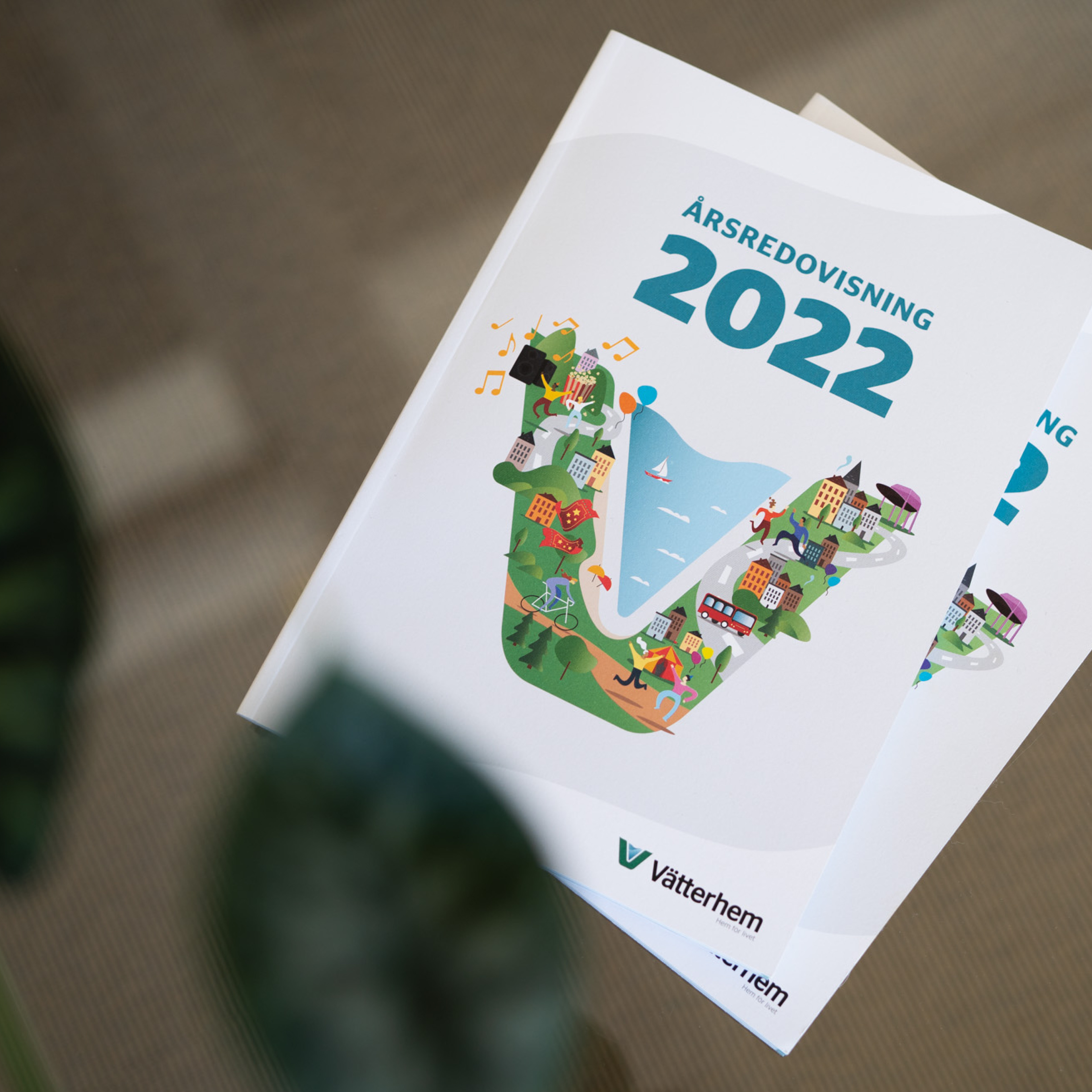 Tillsammans med mina kollegor på IRMA AB fick jag i uppdrag att ta fram Vätterhems årsredovisning för år 2022. Jag bidrog bland annat med den illustration som täcker omslaget.